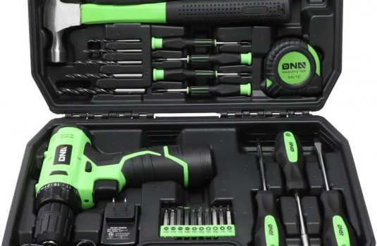 Included Components: 1 X 6" Needle Nose Plier 1 X Utility Knife 1 X Measuring Tape 16Ft / 5M 1 X 12V Cordless Drill 1 X Charging Cable 5-Pc Wood Drill Bits - 1/8", 5/32", 3/16", 1/4", 5/16" 1 X 12Oz Claw Hammer 2-Piece Philips & Standard Screw Driver 1 X Bit Driver Slotted Driver Bits - 5/32", 3/16", 1/4", 9/32" Philips Driver Bits - Ph1, Ph2 Pozi Driver Bits - Pz1, Pz2 Torx Driver Bits - T15, T20 Precision Screw Driver Set - A. Ph0 X 1/2, Ph1 X 1/2, Slotted 3/32 X 1/2, Slotted 1/8 X 1/2