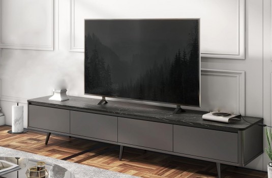 【Sufficient Storage Space】This TV stand features four spacious drawers, which can be used to store game consoles, media, magazines, DVDs, remote controls and decorative ornaments,has enough storage space for storing various items in a reasonable classification.